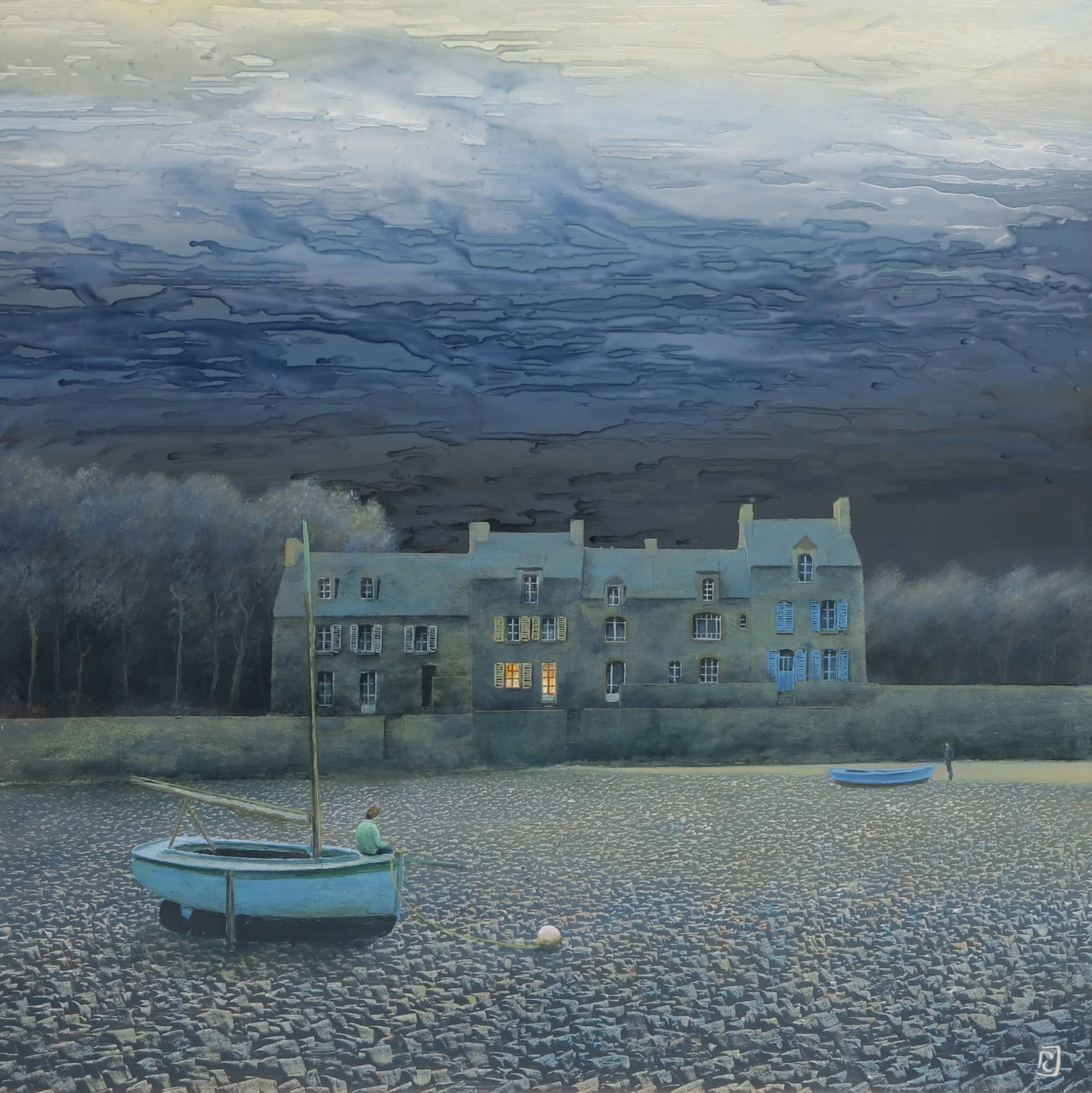 Unknown (Coastal House with Boats). Artist: Philippe Charles Jacquet (French, b. 1954). Date: contemporary. Medium: oil on panel.